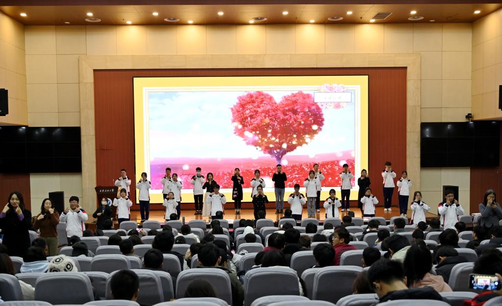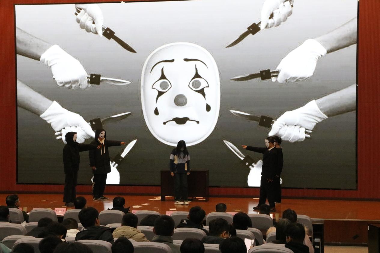 大家共同觀看了心理育人工作成果匯報(bào)演出。音樂(lè)系同學(xué)帶來(lái)的與專(zhuān)業(yè)特長(zhǎng)相結(jié)合的心理情景劇《成長(zhǎng)的岔路口——與嫉妒和解》作為開(kāi)場(chǎng)演出。電子工程學(xué)院智能2301班心理委員袁敏佳為大家展示了主題班會(huì)《告別社恐愛(ài)上溝通》。馬克思主義學(xué)院的研究生們?yōu)榇蠹已莩隽诵睦砬榫皠 稛ā贰S?jì)算機(jī)學(xué)院大一的同學(xué)們出演了心理情景劇《撕開(kāi)迷霧》。心理專(zhuān)干、心理中心教師與心理委員聯(lián)合協(xié)會(huì)、心理協(xié)會(huì)的同學(xué)們共同出演了手語(yǔ)舞《感恩的心》。