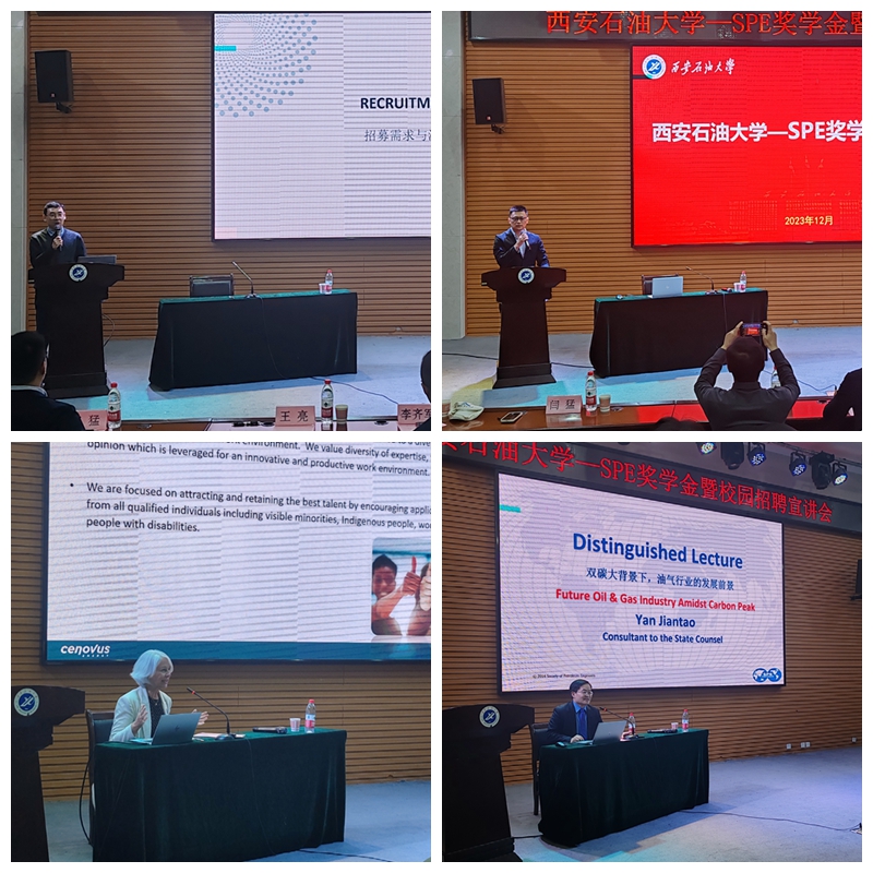 SPE南海分會委員魯申衛(wèi),CENOVUS公司中國區(qū)人力資源經(jīng)理陳芳、人力資源主管劉輝、人力資源分析師柳曼;我校相關(guān)學(xué)院負(fù)責(zé)人及200余名學(xué)生代表參加相關(guān)活動。