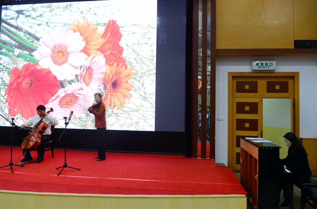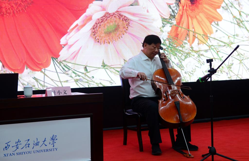 現(xiàn)場(chǎng),葉小文分享了自己與音樂結(jié)緣的過程,講解了“樂”的教化作用。葉小文作為滿天星業(yè)余交響樂團(tuán)團(tuán)長(zhǎng)兼首席大提琴演奏者,與滿天星業(yè)余交響樂團(tuán)小提琴演奏者、我校外國(guó)語學(xué)院教授張梅娟,在音樂系專業(yè)教師的鋼琴伴奏下,共同演奏了曲目《梁?!罚S后葉小文用大提琴獨(dú)奏了一曲《牧歌》。鋼琴跳躍音符的引入,配合著提琴的細(xì)膩流暢,以生動(dòng)的音樂示范浸潤(rùn)著師生的心靈,引發(fā)現(xiàn)場(chǎng)陣陣掌聲。