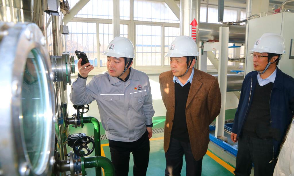 楊戰(zhàn)社、蘇文甫一行還實地考察了綠源公司陜西片區(qū)地熱能供暖指揮中心、供暖和制冷項目現場,并與技術人員進行了深入細致交流。