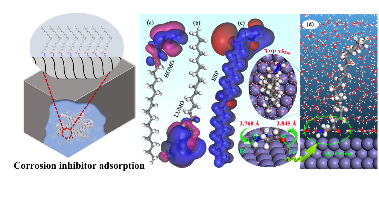 量子化學計算和分子動力學模擬揭示了分子水平的抑制機理。本研究展示了生物基腐蝕抑制劑的卓越性能,為生物基腐蝕抑制劑的設計提供了新的思路,為工業(yè)應用中的綠色技術發(fā)展打開了新的大門。