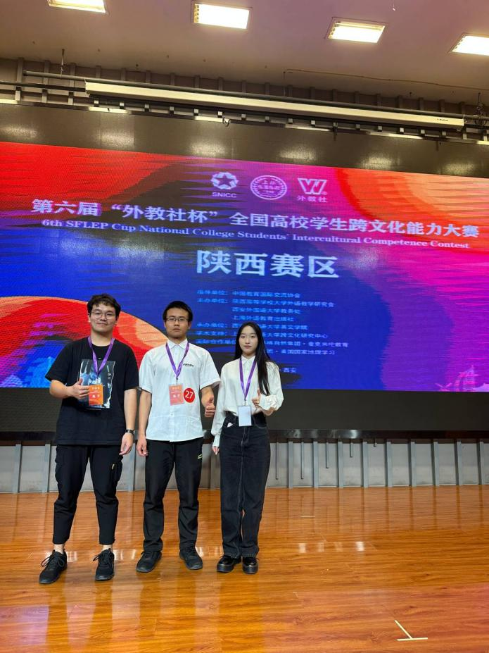 2023年第六屆“外教社杯”全國高校學生跨文化能力大賽陜西賽區(qū)復(fù)賽于10月15日在西安外國語大學長安校區(qū)舉行。在校級初賽中有出色表現(xiàn)的沈凌峰、馬竣中、黃沁妍三位同學代表我校參加了此次大賽。
