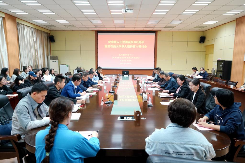 10月10日下午,學(xué)校紀念鐵人王進喜誕辰100周年鐵人精神育人研討會在雁塔校區(qū)西階會議中心第一會議室舉行。校黨委副書記張木、副校長張君濤出席研討會,全國、全省高校黃大年式教師團隊代表,省級教學(xué)名師代表,省級、校級思政“大練兵”教學(xué)標兵代表以及黨委教師工作部、教務(wù)處、研究生院、馬克思主義學(xué)院負責人和師生代表50余人參加會議。本次研討會由陜西省哲學(xué)社會科學(xué)重點研究基地——校鐵人精神研究中心和馬克思主義學(xué)院主辦,會議由馬克思主義學(xué)院院長張海濤主持。