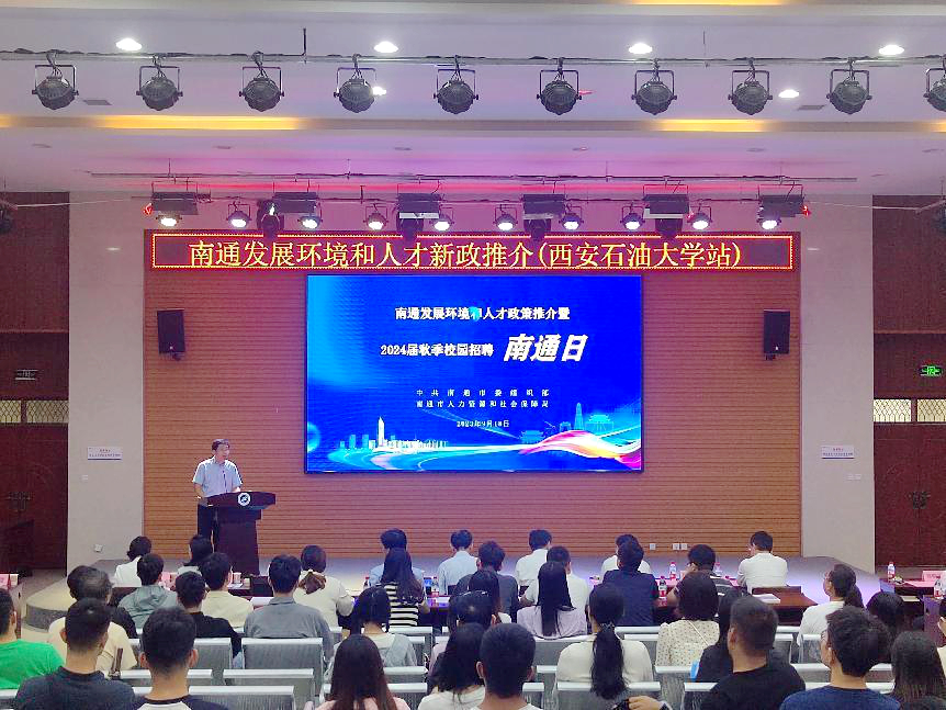 9月18日上午,南通市2023年校園招聘“南通日”活動(dòng)(西安石油大學(xué)站)專場(chǎng)招聘會(huì)在我校鄠邑校區(qū)成功舉辦。我校黨委副書記張木,南通市人力資源和社會(huì)保障局黨組書記、局長(zhǎng)王一鳴,南通市人力資源和社會(huì)保障局黨組成員、副局長(zhǎng)曹星暉等出席會(huì)議。南通市企業(yè)代表,我校就業(yè)指導(dǎo)中心全體工作人員,各院(系)學(xué)生工作主要負(fù)責(zé)同志,2024屆畢業(yè)班輔導(dǎo)員,畢業(yè)生代表300余人參加會(huì)議。會(huì)議由我校學(xué)生工作部(處)部(處)長(zhǎng)、就業(yè)指導(dǎo)中心主任王亮主持。