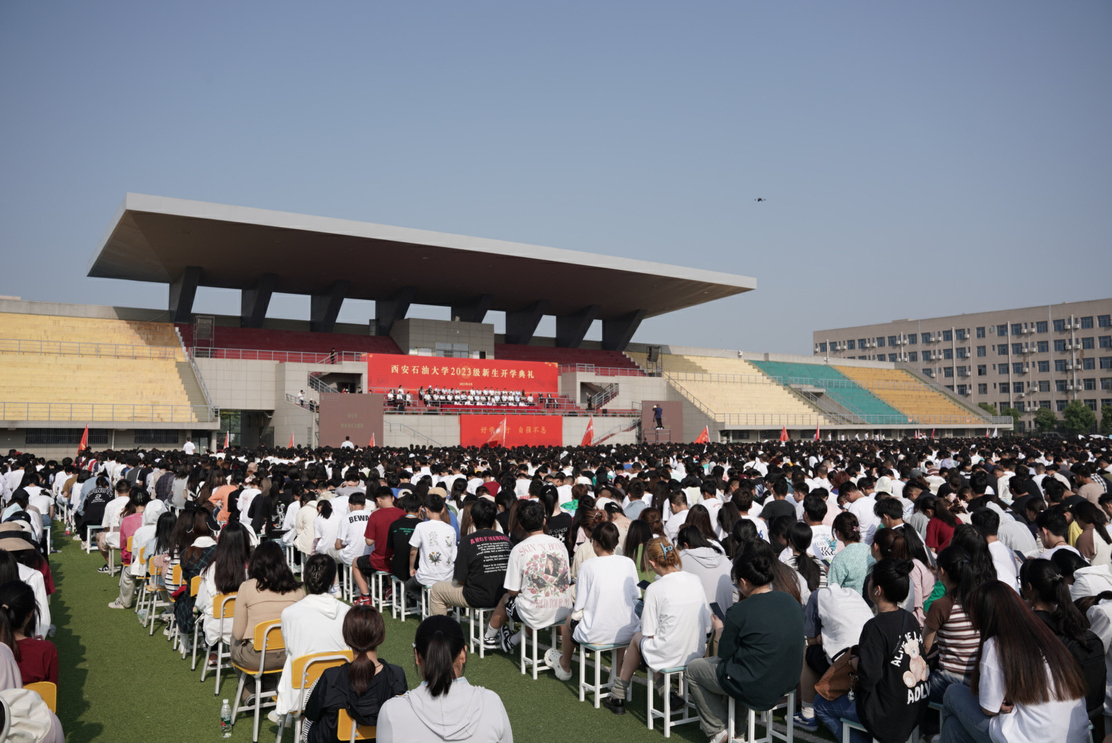 最后,隨著校歌《輝煌明天》奏響,西安石油大學(xué)2023級(jí)新生開(kāi)學(xué)典禮圓滿結(jié)束。