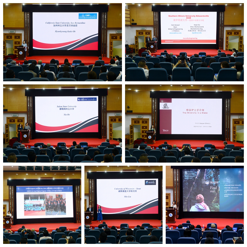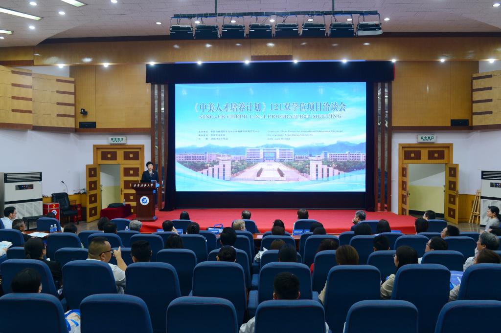 6月16日,由中國教育國際交流協(xié)會中教國際教育交流中心主辦,我校承辦的2023年《中美人才培養(yǎng)計劃》121雙學位項目洽談會在我校雁塔校區(qū)會議中心學術(shù)報告廳舉行。陜西省教育廳二級巡視員董俠,我校副校長張榮軍,中教國際教育交流中心主任張靖、副主任吳琴,美國州立大學與學院學會及美國加州州立大學圣貝納迪諾、美國塞勒姆州立大學等121項目7所美方高校代表,全省27所高校代表,我校國際交流與合作處、教務處、國際教育學院及各院(系)負責人等近百名中外嘉賓出席會議,共商中美教育合作交流大計。