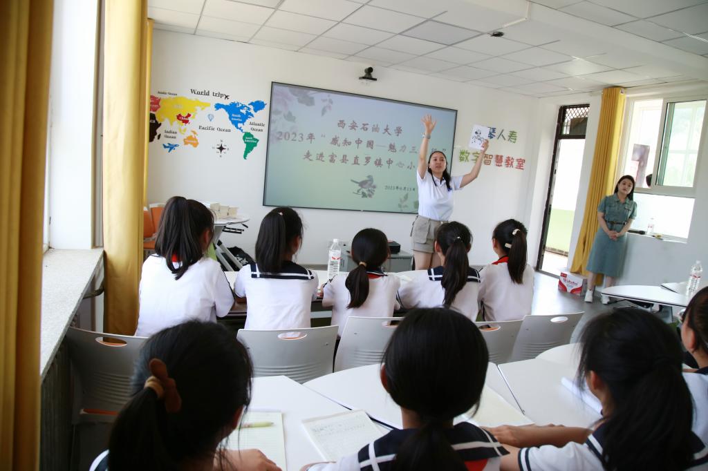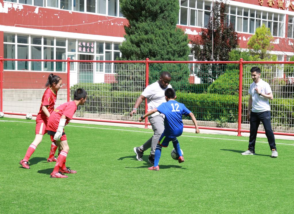 在直羅小學(xué),留學(xué)生們?yōu)樾W(xué)生們帶來了有趣生動(dòng)的英語口語課。實(shí)踐教學(xué)活動(dòng)是“感知中國”活動(dòng)重要組成部分,在互動(dòng)課堂上,小學(xué)生們與來自不同國家的留學(xué)生互動(dòng)交流,來自馬來西亞的詠翰分別用中文、英文、馬來西亞語給小學(xué)生們教了生日祝福歌,來自哈薩克斯坦的小云用圖畫、猜謎游戲?yàn)樾W(xué)生們上了一堂生動(dòng)活潑的英語課。有趣的英語課堂激發(fā)了小學(xué)生學(xué)習(xí)英語的熱情和濃厚的興趣,課堂氣氛熱烈,同學(xué)們發(fā)言踴躍,一節(jié)課下來小學(xué)生們意猶未盡。英語課堂外,是以“傳播快樂足球”為主題的足球互動(dòng)活動(dòng),留學(xué)生與小學(xué)生們開展了一場(chǎng)足球友誼賽。場(chǎng)上,參賽隊(duì)員們齊心協(xié)力,奮勇拼搏。帶球、護(hù)球、傳球、射球,動(dòng)作嫻熟,拼勁十足。就這樣,初次來到直羅小學(xué)的留學(xué)生們感受到了當(dāng)?shù)氐娘L(fēng)土人情,并對(duì)接下來與孩子們的相遇充滿了期待?;顒?dòng)中,我校專程為直羅小學(xué)帶去了50本捐贈(zèng)圖書和5個(gè)嶄新足球。