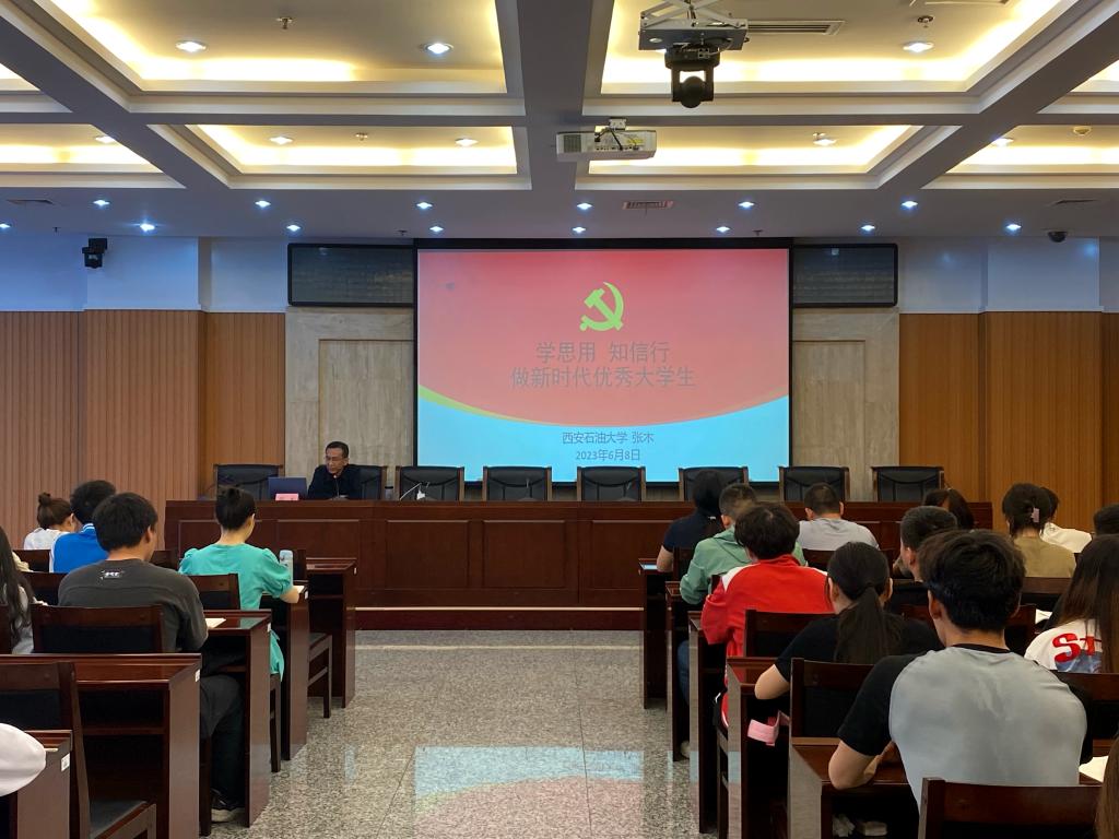 6月8日下午,校黨委副書記張木在鄠邑校區(qū)圖書館第一會議室講授了題為《學(xué)思用知信行做新時代優(yōu)秀大學(xué)生》的學(xué)習(xí)貫徹習(xí)近平新時代中國特色社會主義思想主題教育專題黨課。學(xué)生工作部負(fù)責(zé)人、部分學(xué)工干部、各院(系)學(xué)生黨員代表90余人參加了黨課學(xué)習(xí)。此次專題黨課由學(xué)生工作部部長王亮主持。
