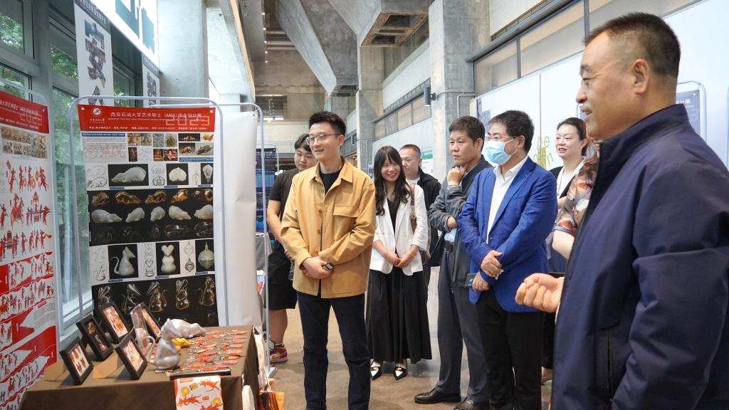 開幕式結(jié)束后,同學(xué)們在各自展位前向與會(huì)領(lǐng)導(dǎo)嘉賓詳細(xì)介紹了自己的創(chuàng)作理念和研究方法,從技藝融合的角度綜合性開展老舊礦業(yè)社區(qū)人居環(huán)境更新設(shè)計(jì)、工業(yè)遺產(chǎn)歷史風(fēng)貌區(qū)街坊改造設(shè)計(jì)、非物質(zhì)文化遺產(chǎn)保護(hù)與傳承研究、民俗民藝拓展應(yīng)用等實(shí)踐創(chuàng)新設(shè)計(jì),得到了與會(huì)嘉賓的贊揚(yáng)和好評。