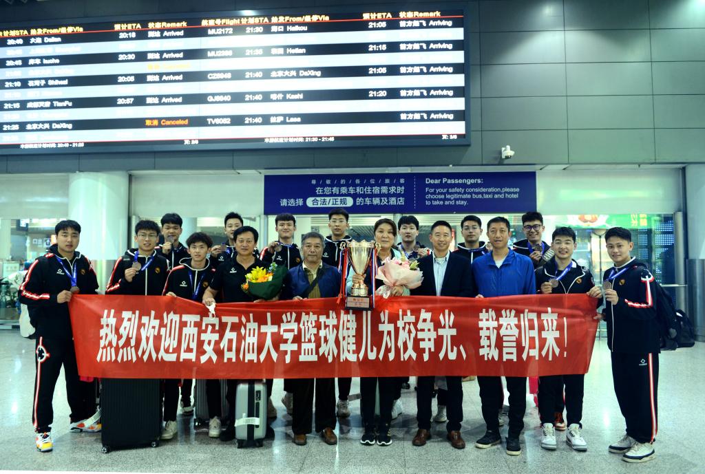 據(jù)悉,當(dāng)天下午,體育學(xué)院倪振文、李壽邦一行前往西安咸陽(yáng)國(guó)際機(jī)場(chǎng)接機(jī),晚上10:20左右接機(jī)大巴車到達(dá)雁塔校區(qū)?!盁崃覛g迎西安石油大學(xué)籃球健兒為校爭(zhēng)光、載譽(yù)歸來(lái)!”歡迎儀式從隊(duì)員下車開始,獻(xiàn)花隊(duì)伍為每名教練組成員和隊(duì)員獻(xiàn)上鮮花。