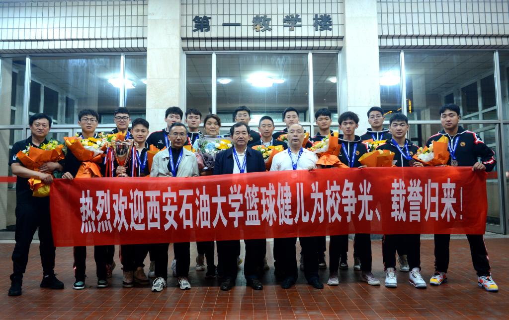 第25屆中國(guó)大學(xué)生籃球二級(jí)聯(lián)賽全國(guó)總決賽近日落下帷幕,我校男子籃球隊(duì)首次參賽便創(chuàng)紀(jì)錄地獲得全國(guó)季軍。5月25日晚,學(xué)校在雁塔校區(qū)為載譽(yù)歸來(lái)的西石大男籃舉行了簡(jiǎn)單而隆重的歡迎儀式,校長(zhǎng)李天太、黨委副書記張木、副校長(zhǎng)陳軍斌出席,儀式由張木主持。