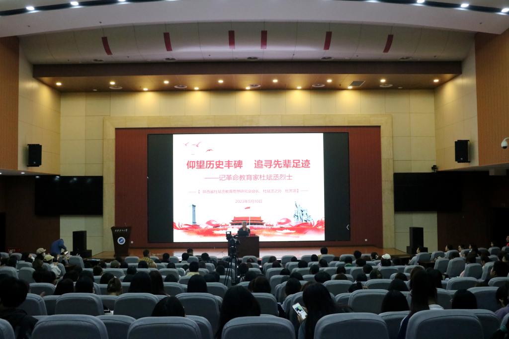 5月10日下午,由校團委主辦的第七十七期明德大講堂在鄠邑校區(qū)弘石學(xué)術(shù)報告廳舉行。陜西省杜斌丞教育思想研究會會長、杜斌丞烈士之孫杜芳濱應(yīng)邀作了題為《仰望歷史豐碑 追尋先輩足跡——記革命教育家杜斌丞烈士》的講座,400余名師生現(xiàn)場聆聽報告。