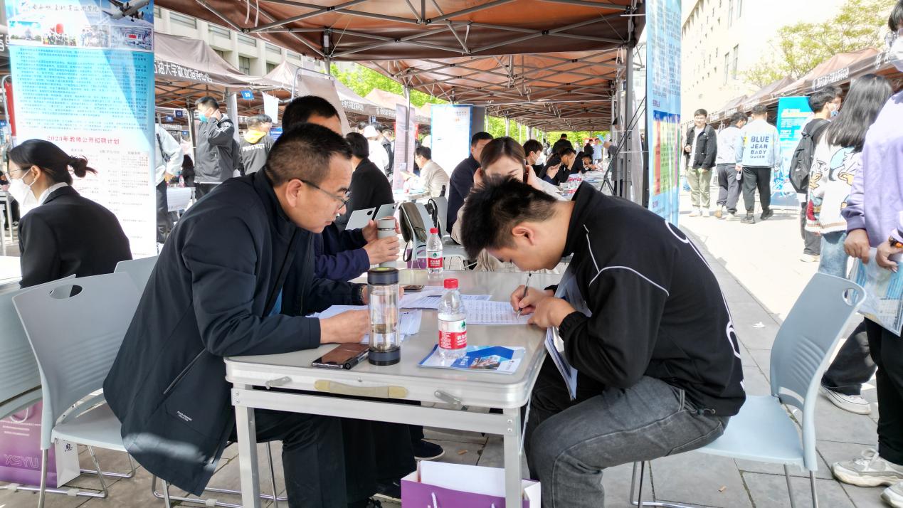 4月11日上午,我校2023屆畢業(yè)生春季校園系列第五場綜合雙選會在鄠邑校區(qū)江漢林廣場順利舉辦。中國石油工程建設有限公司北京設計分公司、中國化學工程第十六建設有限公司、中化二建集團有限公司、中煤第三建設(集團)有限責任公司三十六工程處、中鐵寶橋集團有限公司等70余家單位,“魅力南京”招聘團和渭南高新區(qū)人社局單位招聘團2個地方招聘團,共計200余名招聘代表參會,我校及兄弟院校畢業(yè)生共計1000余人參會。就業(yè)指導中心及各院(系)負責人深入招聘會一線指導推薦畢業(yè)生就業(yè)。
