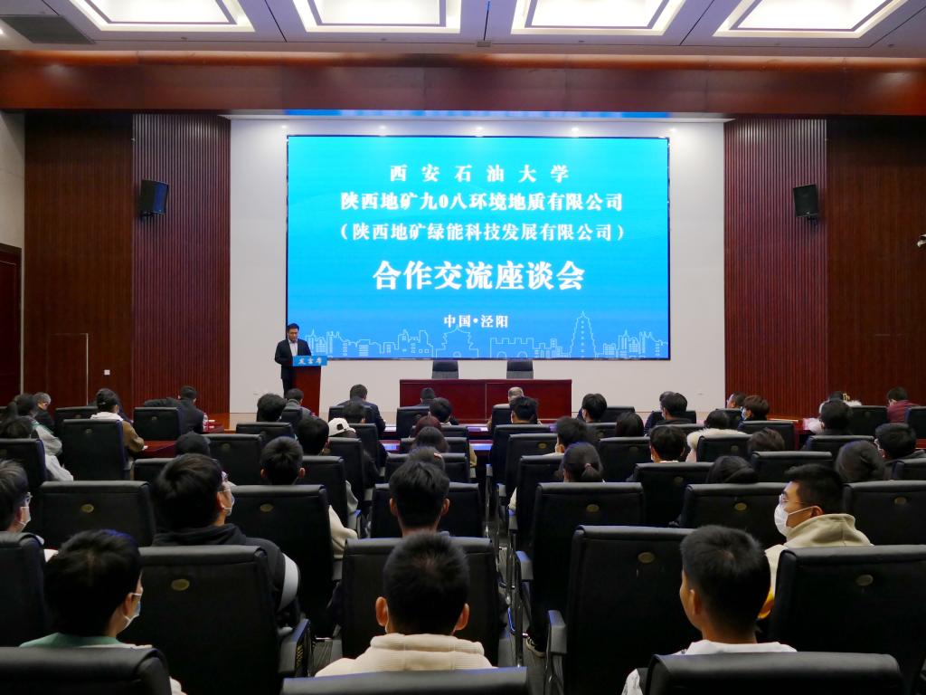 為進(jìn)一步加強(qiáng)學(xué)校實(shí)習(xí)實(shí)訓(xùn)基地建設(shè)和校企合作,拓寬大學(xué)生就業(yè)渠道,3月18日下午,副校長(zhǎng)陳軍斌帶隊(duì)前往秦創(chuàng)原·涇陽(yáng)創(chuàng)新實(shí)踐服務(wù)中心,與陜西地礦九〇八環(huán)境地質(zhì)有限公司(陜西地礦綠能科技發(fā)展有限公司)開展合作交流座談,簽署“實(shí)踐教學(xué)基地”合作協(xié)議并舉行掛牌儀式。實(shí)驗(yàn)室管理處、新能源學(xué)院相關(guān)負(fù)責(zé)人和教師代表及70余名參加認(rèn)識(shí)實(shí)習(xí)的學(xué)生共同參加活動(dòng)。涇陽(yáng)縣委常委、組織部部長(zhǎng)孫彥彬,陜西地礦集團(tuán)有限公司總工程師馬思錦、地質(zhì)科技部主任張文峰,九〇八公司黨委書記、執(zhí)行董事、總經(jīng)理王康,九〇八公司黨委委員、總工程師暢俊斌,九〇八公司黨委委員、副總經(jīng)理沈春強(qiáng)等出席活動(dòng)。