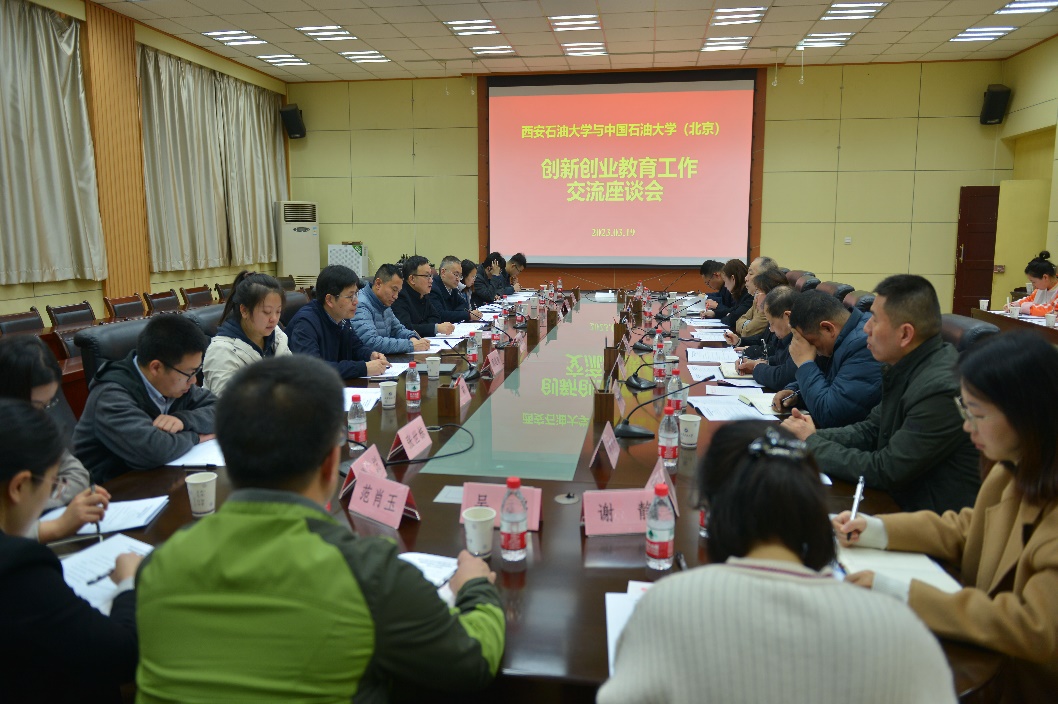 陳軍斌代表學(xué)校對中國石油大學(xué)(北京)領(lǐng)導(dǎo)一行的來訪表示歡迎。他簡要介紹了學(xué)校近年來在創(chuàng)新創(chuàng)業(yè)教育與管理方面的建設(shè)情況和取得成果。他表示,西安石油大學(xué)和中國石油大學(xué)(北京)作為兄弟院校,具有相同行業(yè)背景,兩校有著深厚友誼和合作淵源,尤其克拉瑪依校區(qū)與學(xué)校同處西部,人才培養(yǎng)目標(biāo)相近,項目和平臺建設(shè)上有著良好合作基礎(chǔ)。他期待兩校進一步加強交流合作,不斷強化兩校培養(yǎng)西部國家能源戰(zhàn)略人才力量的使命擔(dān)當(dāng)。在后續(xù)的創(chuàng)新創(chuàng)業(yè)教育工作開展當(dāng)中,學(xué)校應(yīng)積極向中國石油大學(xué)(北京)學(xué)習(xí)借鑒優(yōu)秀的創(chuàng)新管理經(jīng)驗與制度,建設(shè)更加完備的創(chuàng)新創(chuàng)業(yè)人才培養(yǎng)體系,在建設(shè)高質(zhì)量創(chuàng)新創(chuàng)業(yè)教育體系等方面邁上更高臺階。