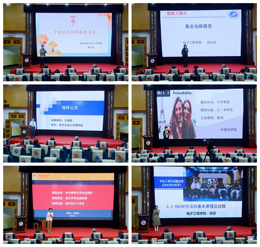 為深入學(xué)習(xí)貫徹黨的二十大精神,認(rèn)真落實(shí)習(xí)近平總書記在學(xué)校思想政治理論課教師座談會(huì)上的重要講話精神,充分發(fā)揮課堂教學(xué)主渠道在高校思想政治工作中的作用,扎實(shí)深入推進(jìn)學(xué)校課程思政建設(shè)工作,3月10日,我校思政課教師“大練兵”課程思政組展示活動(dòng)決賽在雁塔校區(qū)學(xué)術(shù)報(bào)告廳舉行?;顒?dòng)特邀請陜西師范大學(xué)教育學(xué)部傅鋼善教授,西北工業(yè)大學(xué)數(shù)學(xué)與統(tǒng)計(jì)學(xué)院孫浩教授、西北大學(xué)高等教育研究中心姚聰莉教授、西北工業(yè)大學(xué)馬克思主義學(xué)院賀苗教授、西安科技大學(xué)馬克思主義學(xué)院張銘鐘教授5位專家擔(dān)任評委。校長李天太、校黨委副書記張木、副校長陳軍斌出席活動(dòng),宣傳部、學(xué)生工作部、教師工作部、人事處、教務(wù)處、高教研究與評估中心及各院(系)主要負(fù)責(zé)人,學(xué)校各專業(yè)負(fù)責(zé)人、一流本科課程負(fù)責(zé)人、課程思政示范課團(tuán)隊(duì)成員及青年教師代表到場觀摩。活動(dòng)由陳軍斌主持。