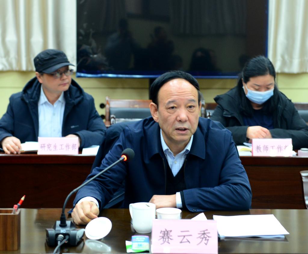 開班式結(jié)束后,校黨委書記賽云秀對(duì)全體參訓(xùn)學(xué)員提出了三點(diǎn)要求。一是要提高政治站位,深入學(xué)習(xí)貫徹黨的二十大精神,堅(jiān)持原原本本學(xué)、融會(huì)貫通悟、聯(lián)系實(shí)際思,深刻領(lǐng)悟“兩個(gè)確立”的決定性意義,增強(qiáng)“四個(gè)意識(shí)”、堅(jiān)定“四個(gè)自信”、做到“兩個(gè)維護(hù)”。二是要遵守培訓(xùn)紀(jì)律,發(fā)揮示范作用,要從講政治的高度、從推動(dòng)學(xué)校高質(zhì)量發(fā)展的大局來(lái)認(rèn)識(shí)這次培訓(xùn),妥善處理工學(xué)矛盾,起到帶頭示范作用。三是要深學(xué)細(xì)思踐悟,做到學(xué)以致用,不斷提升解決問題、應(yīng)對(duì)風(fēng)險(xiǎn)挑戰(zhàn)的能力,切實(shí)把學(xué)習(xí)成效轉(zhuǎn)化為推動(dòng)事業(yè)發(fā)展的強(qiáng)大動(dòng)力,持續(xù)推進(jìn)學(xué)校各項(xiàng)重點(diǎn)工作落地落實(shí),奮力推進(jìn)學(xué)校高質(zhì)量發(fā)展。