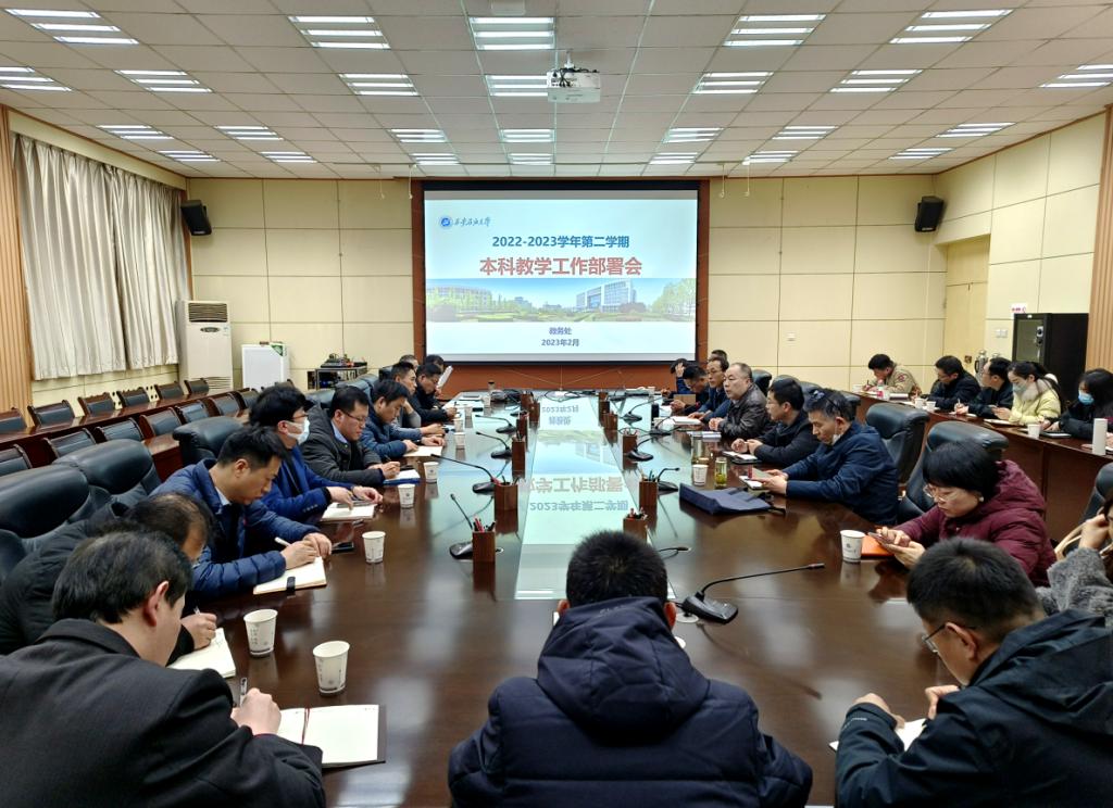 陳軍斌指出,各教學單位要按照學校春季開學工作的總體要求,扎實做好新學期各項教學準備工作,進一步細化春季學期本科教學工作任務,確保各項工作平穩(wěn)有序進行。他強調,一是各院(系)要高度重視上學期課程考核工作,結合學生上學期學習實際,精心組織開展線下串講和輔導答疑,合理安排公共課程和專業(yè)課程考試,同時加快進度補足補齊實驗實習等實踐教學環(huán)節(jié),確保各項教學工作高質量完成。二是加強招生宣傳與錄取工作,招生工作是立德樹人的起點,優(yōu)質生源是人才培養(yǎng)質量的基礎,要不斷創(chuàng)新工作思路,豐富宣傳方式,強化生源基地建設,總結凝練專業(yè)特色與人才培養(yǎng)成效,增強學校影響力,提升宣傳實效,貫徹招生宣傳永遠在路上的理念。三是深化教育教學改革,聚焦本科教學核心指標,督導檢查教改項目落實進度,強化一流專業(yè)建設,以課程建設為突破口,積極籌備一流課程申報,全面推進課程思政建設,打造優(yōu)秀課程教學團隊,加強一流教材申報與建設,提前謀劃精準施策,統(tǒng)籌做好申報各環(huán)節(jié)工作,持續(xù)推進工程教育專業(yè)認證工作,加強實驗教學平臺建設,著力培育高水平教學成果,推動本科教育高質量發(fā)展。四是圍繞新一輪本科教育教學審核評估指標體系,制定學校工作體系和實施方案,扎實做好基礎數(shù)據(jù)統(tǒng)計工作,對標對本籌備自評報告,提出問題清單,組織學習審核評估指標體系,查缺補漏著手準備基層教學資料歸檔工作。五是以審核評估指標體系為依據(jù),做好教學經(jīng)費預算,全力保障實驗室建設、教學日常運行及教學資源條件,同時保證經(jīng)費投入的合理性、使用的有效性以及管理的規(guī)范性。六是扎實推進師德教風建設,牢固樹立教師師德底線意識,嚴肅教風教紀,愛業(yè)愛生,身體力行,爭做“德高為師,身正為范”以及“四有”好老師。七是各級教學管理人員要嚴于律己,加強學習,以身作則,提高教學管理水平,增強統(tǒng)籌協(xié)調、系統(tǒng)謀劃能力,做到“勤思考、勤動手、勤動嘴、勤動腿”,深入課堂一線,深入基層教學組織,善于在細微處發(fā)現(xiàn)問題解決問題,以高效的教學管理促進教學質量有力提升。
