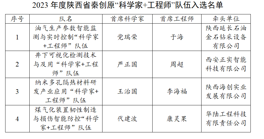 近日,陜西省科學技術廳公布了秦創(chuàng)原2023年度“科學家+工程師”隊伍入選名單。我校黨瑞榮、嚴正國、王治國、代建波四位老師科研團隊與企業(yè)深度合作,成果入選“科學家+工程師”隊伍。