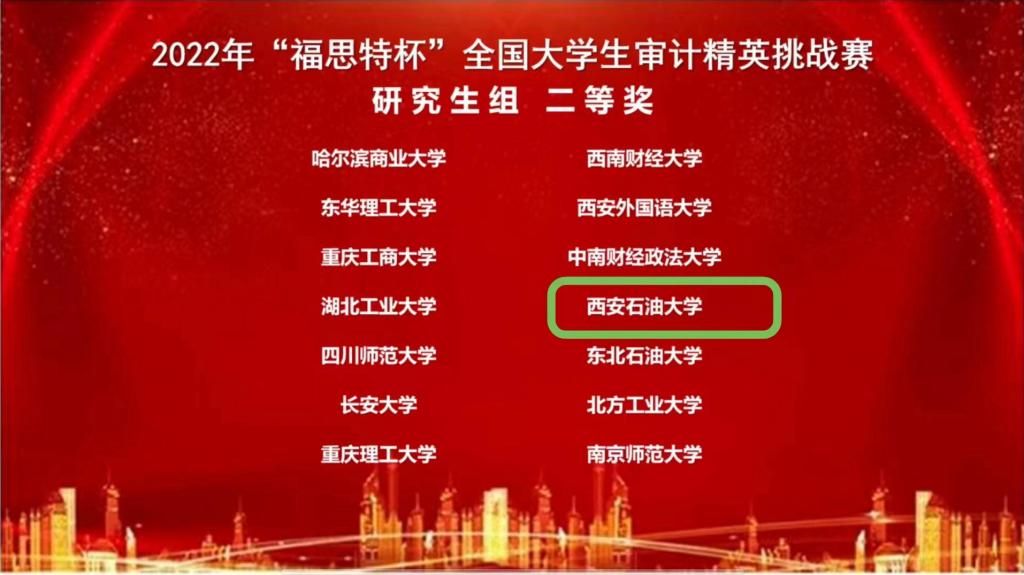 本次比賽采用線上的方式進(jìn)行,來(lái)自西南財(cái)經(jīng)大學(xué)、南京審計(jì)大學(xué)、中南財(cái)經(jīng)政法大學(xué)、上海立信會(huì)計(jì)金融學(xué)院、東北石油大學(xué)等340所院校的390支隊(duì)伍參加了本次比賽,1800余名師生同臺(tái)競(jìng)技,其中研究生組72支代表隊(duì),本科組258支代表隊(duì),高職組60支代表隊(duì)。我校經(jīng)濟(jì)管理學(xué)院會(huì)計(jì)系黃莉老師指導(dǎo)的2019級(jí)本科生李文文、吳珊珊、李洋獲得本科生組一等獎(jiǎng),黃莉、侯曉靖老師指導(dǎo)的2022級(jí)研究生王萍、王嚴(yán)、白玉獲得研究生組二等獎(jiǎng),為我校參加該項(xiàng)賽事以來(lái)取得的最好成績(jī)。