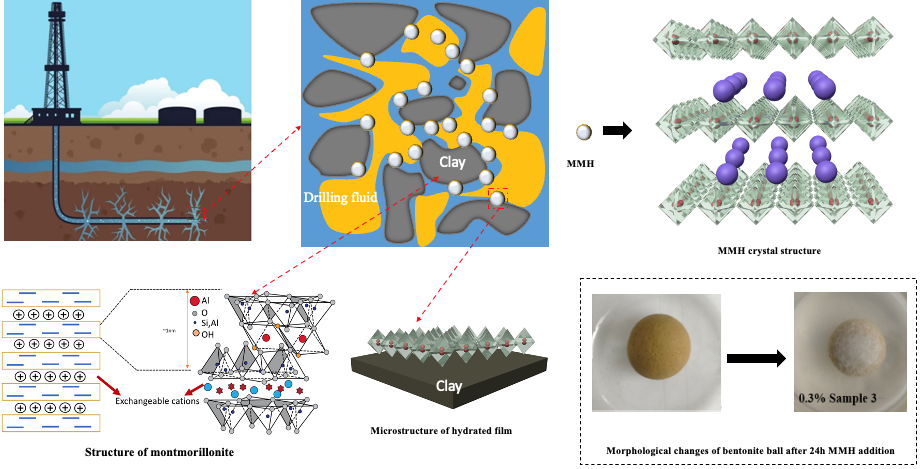 該課題組同時對抗高溫環(huán)保型鉆井液抑制劑進行了研究,在現(xiàn)有鎂鋁插層聚合物(MMH)的基礎上,優(yōu)化制備條件,如圖2所示。當鎂鋁比為3時插層聚合物表現(xiàn)出優(yōu)異的性能,在鉆井液中添加量為0.3%時鉆井液的抑制性能參數(shù)較添加4%KCl的鉆井液提高了136.2%。經過200℃老化16h后,添加了鎂鋁插層聚合物的鉆井液仍表現(xiàn)出良好的抑制性和提切性。(Minerals2022, 12(4), 459.論文鏈接:https://doi.org/10.3390/min12040459)