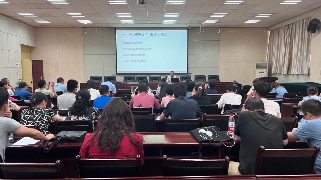 在授課中,張木指出,馬克思主義揭示了人類社會的發(fā)展規(guī)律,是認(rèn)識世界、改造世界的科學(xué)真理。百年以來,中國共產(chǎn)黨堅持把馬克思主義寫在自己的旗幟上,不斷推進(jìn)馬克思主義中國化時代化,用博大胸懷吸收人類創(chuàng)造的一切優(yōu)秀文明成果,用馬克思主義中國化的科學(xué)理論引領(lǐng)偉大實踐。張木從馬克思主義產(chǎn)生的歷史背景、解決的基本問題以及馬克思主義理論的三大體系、鮮明特征、學(xué)習(xí)方法、馬克思主義政治經(jīng)濟(jì)學(xué)等方面,詳細(xì)講授了馬克思主義的基本原理,指出學(xué)習(xí)馬克思主義是我們終生的事業(yè),要深入學(xué)、系統(tǒng)學(xué)、反復(fù)學(xué)、了然于胸學(xué)、學(xué)用結(jié)合學(xué),將馬克思主義作為人生的指南。張木最后強(qiáng)調(diào),習(xí)近平新時代中國特色社會主義思想是當(dāng)代中國馬克思主義、二十一世紀(jì)馬克思主義,是中華文化和中國精神的時代精華。當(dāng)代青年學(xué)習(xí)和實踐馬克思主義,最根本的就是要自覺以習(xí)近平新時代中國特色社會主義思想鑄魂立德。