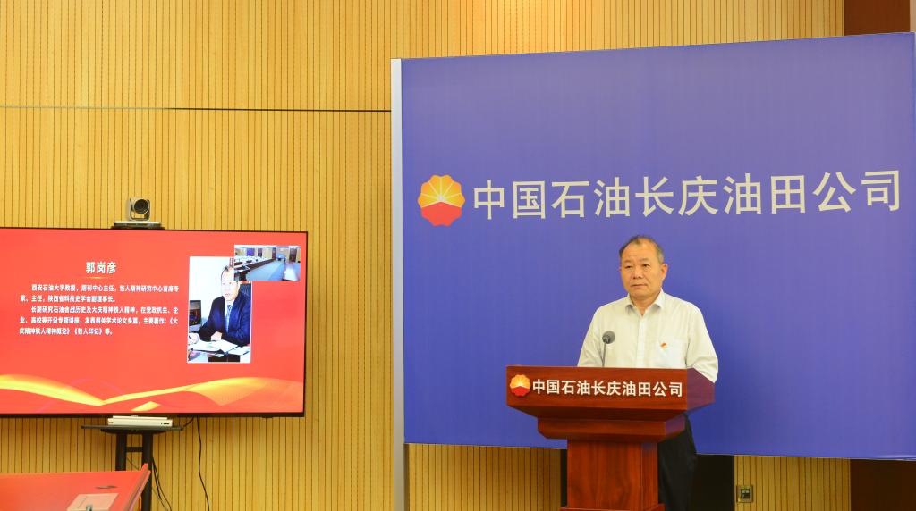 我校鐵人精神研究中心首席專家、主任郭崗彥作為特邀專家發(fā)言。他從“偉大奮斗歷程,錘煉偉大精神”“偉大創(chuàng)新實(shí)踐,豐富偉大精神”“胸懷偉大夢想,當(dāng)好標(biāo)桿旗幟”三個方面談了體會。他談到,中石油是石油精神和大慶精神鐵人精神的首要傳承者和忠實(shí)實(shí)踐者,在教學(xué)研究中,我們始終把中石油作為研究樣本和實(shí)踐基地,密切關(guān)注中國石油黨組在宣傳思想文化方面的決策部署,特別是在新時代弘揚(yáng)石油精神和大慶精神鐵人精神的情況。他表示,2021年9月,中國石油黨組將1949年9月25日玉門油礦解放日設(shè)定為“中國石油紀(jì)念日”,這不是一個簡單的時間節(jié)點(diǎn)的選擇,是中國石油黨組黨史學(xué)習(xí)教育的重要成果,它體現(xiàn)了對石油歷史文化傳統(tǒng)的尊重和珍惜,也是對老一輩石油人偉大精神的挖掘和英雄事跡的追憶。學(xué)好歷史,我們才能把握未來,標(biāo)定前進(jìn)的方向,正是有了這種現(xiàn)實(shí)的歷史觀,共和國波瀾壯闊的石油奮斗史才能在新時代凝練成為更強(qiáng)大更持久的精神力量。