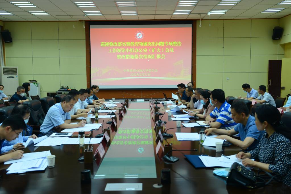 5月27日上午,學(xué)校在雁塔校區(qū)會議中心第一會議室召開巡視整改落實暨教育領(lǐng)域突出問題專項整治工作領(lǐng)導(dǎo)小組辦公室(擴大)會及整改措施落實情況匯報會。校黨委副書記、巡視整改落實暨教育領(lǐng)域突出問題專項整治工作領(lǐng)導(dǎo)小組副組長、辦公室主任雷西合主持會議。6個整改工作組及13家牽頭單位主要負(fù)責(zé)人,各項整改措施落實責(zé)任單位主要負(fù)責(zé)人參加會議。