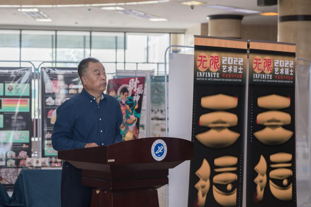 人文學(xué)院藝術(shù)碩士研究生導(dǎo)師肖雪鋒教授代表研究生導(dǎo)師發(fā)言。她說,同學(xué)們用藝術(shù)設(shè)計(jì)的表現(xiàn)手法詮釋著對美的理解和當(dāng)下社會問題的關(guān)注,參展的每件作品都承載著同學(xué)們的理想和希望,每件作品背后都凝聚著各位導(dǎo)師和同學(xué)們的辛勤汗水、不懈努力與執(zhí)著追求,希望各位同學(xué)前程似錦,努力開啟屬于自己的美好明天。