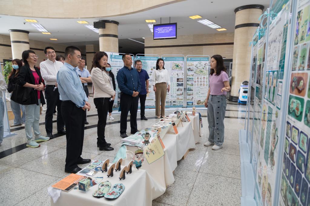 同學(xué)們在各自展位前向與會領(lǐng)導(dǎo)詳細(xì)介紹了自己的創(chuàng)作理念和研究方法,從設(shè)計(jì)角度探索開展能源礦區(qū)景觀活化再生設(shè)計(jì)、非物質(zhì)文化遺產(chǎn)保護(hù)與傳承、民俗民藝拓展應(yīng)用等實(shí)踐研究工作,得到了大家的肯定和贊揚(yáng)。