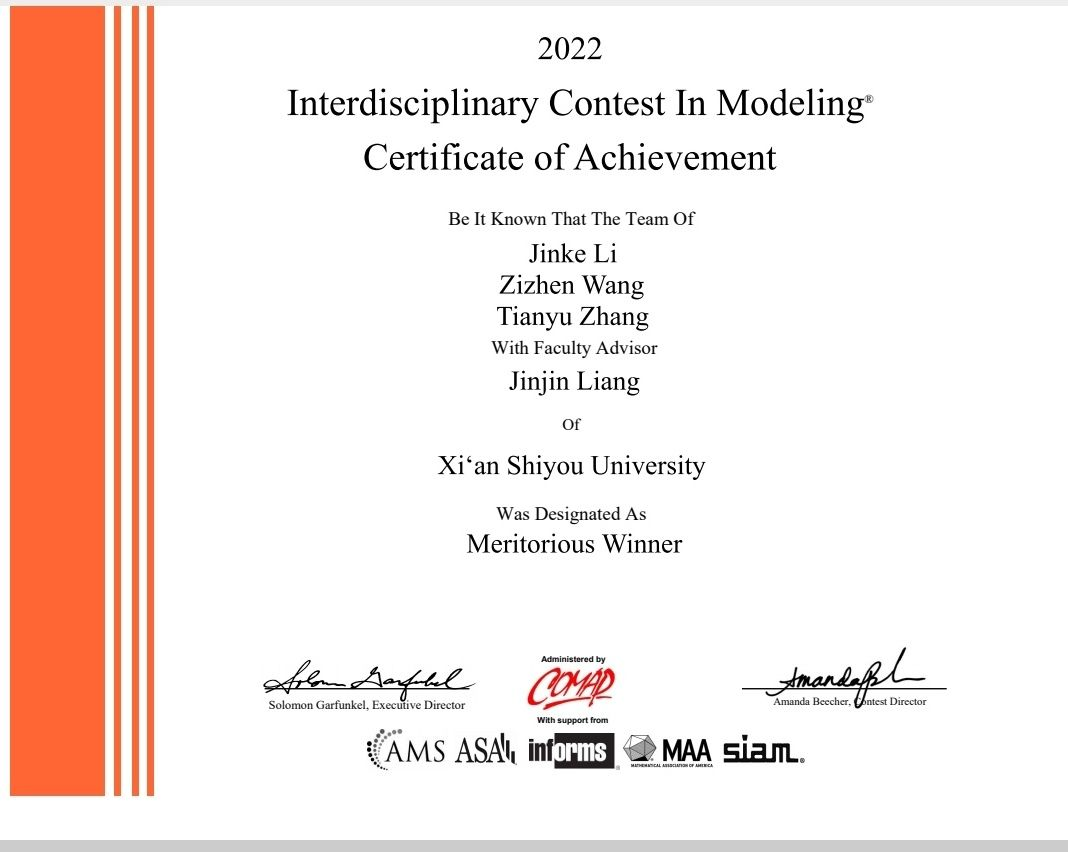日前,2022年美國大學(xué)生數(shù)學(xué)建模競(jìng)賽落下帷幕。在這次比賽中,我校學(xué)生李金科、王子禛、張?zhí)煊暝诶韺W(xué)院教師梁錦錦的指導(dǎo)下,不負(fù)眾望,以優(yōu)異的表現(xiàn)喜獲一等獎(jiǎng)(M獎(jiǎng),Meritorious Winner)。