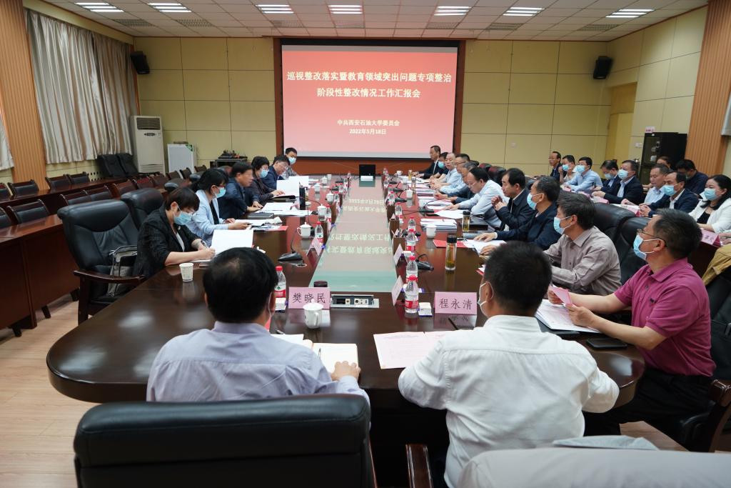 根據(jù)陜西教育領(lǐng)域突出問(wèn)題專項(xiàng)整治工作領(lǐng)導(dǎo)小組的統(tǒng)一部署,5月18日上午,省教育領(lǐng)域突出問(wèn)題專項(xiàng)整治工作第一督導(dǎo)組來(lái)校開(kāi)展巡視整改落實(shí)暨教育領(lǐng)域突出問(wèn)題專項(xiàng)整治工作督導(dǎo)檢查。學(xué)校在雁塔校區(qū)會(huì)議中心第一會(huì)議室召開(kāi)了巡視整改落實(shí)暨教育領(lǐng)域突出問(wèn)題專項(xiàng)整治階段性整改情況工作匯報(bào)會(huì)。會(huì)議由校黨委書(shū)記、學(xué)校巡視整改落實(shí)暨教育領(lǐng)域突出問(wèn)題專項(xiàng)整治工作領(lǐng)導(dǎo)小組組長(zhǎng)賽云秀主持。陜西教育領(lǐng)域突出問(wèn)題專項(xiàng)整治第一督導(dǎo)組組長(zhǎng)崔景文一行6人,學(xué)校巡視整改落實(shí)暨教育領(lǐng)域?qū)m?xiàng)整治工作領(lǐng)導(dǎo)小組全體成員出席會(huì)議。