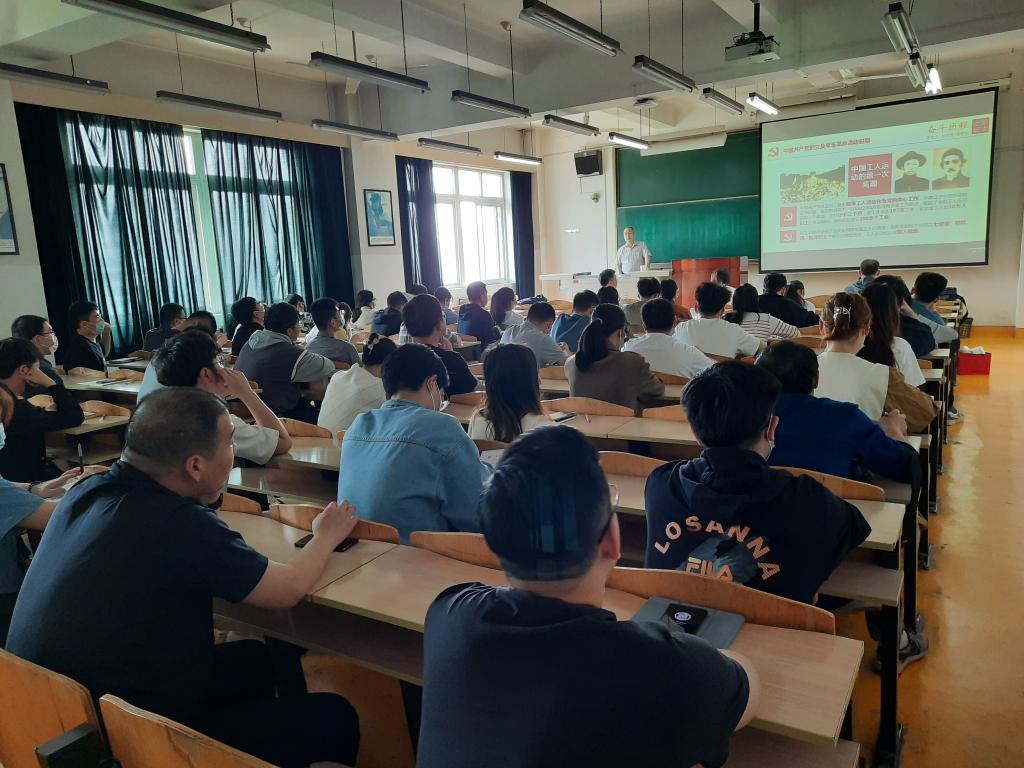 課程從三個(gè)方面展開(kāi)。在第一部分,陳軍斌以“為何學(xué)黨史?”“如何學(xué)黨史?”兩個(gè)命題率先發(fā)問(wèn),而后通過(guò)三個(gè)“必然要求”“歷史是最好的教科書(shū)”、毛澤東同志《如何研究中共黨史》報(bào)告中的重要論述、學(xué)習(xí)黨史的現(xiàn)實(shí)意義等方面系統(tǒng)全面講授和闡釋學(xué)習(xí)黨史的重要性與方法論;第二部分,陳軍斌旁征博引,深入淺出,帶領(lǐng)師生深入學(xué)習(xí)了中國(guó)共產(chǎn)黨的百年奮斗歷程,學(xué)習(xí)了黨在開(kāi)天辟地救國(guó)大業(yè)中浴血奮戰(zhàn)的新民主主義革命歷程、黨在改天換地興國(guó)大業(yè)中艱難探索的社會(huì)主義革命和建設(shè)歷程、黨在翻天覆地富國(guó)大業(yè)中砥礪前行的改革開(kāi)放和社會(huì)主義現(xiàn)代化建設(shè)歷程、黨在驚天動(dòng)地強(qiáng)國(guó)大業(yè)中奮斗奮進(jìn)的中國(guó)特色社會(huì)主義新時(shí)代歷程;第三部分,陳軍斌以史為鑒,以史明今,從“科學(xué)的理論指導(dǎo)”“堅(jiān)定的理想信念”“強(qiáng)大的組織優(yōu)勢(shì)”“堅(jiān)實(shí)的群眾基礎(chǔ)”“徹底的自我革命”五個(gè)方面深刻揭示了“中國(guó)共產(chǎn)黨為什么‘能’”。
