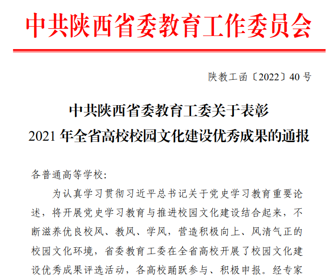 我校榮獲2021年全省高校校園文化建設(shè)優(yōu)秀成果一等獎(jiǎng)