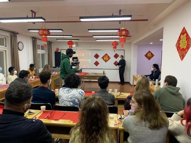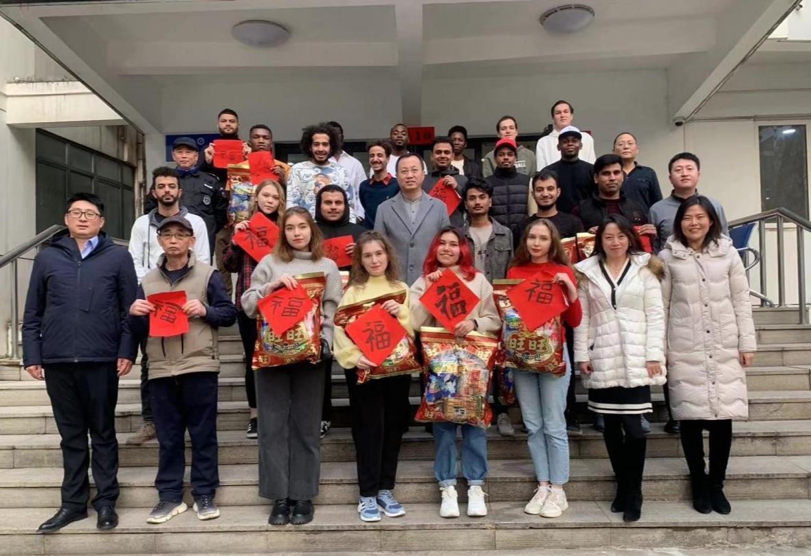 爆竹聲中一歲除,春風送暖入屠蘇。1月30日下午,張榮軍副校長來到明德校區(qū)看望、慰問寒假留校國際學生,向留學生送去虎年新春祝福,國際教育學院院長董皓、副院長顏庭星陪同慰問,并參加國際學生寫“?!弊种袊汗?jié)文化感知活動。