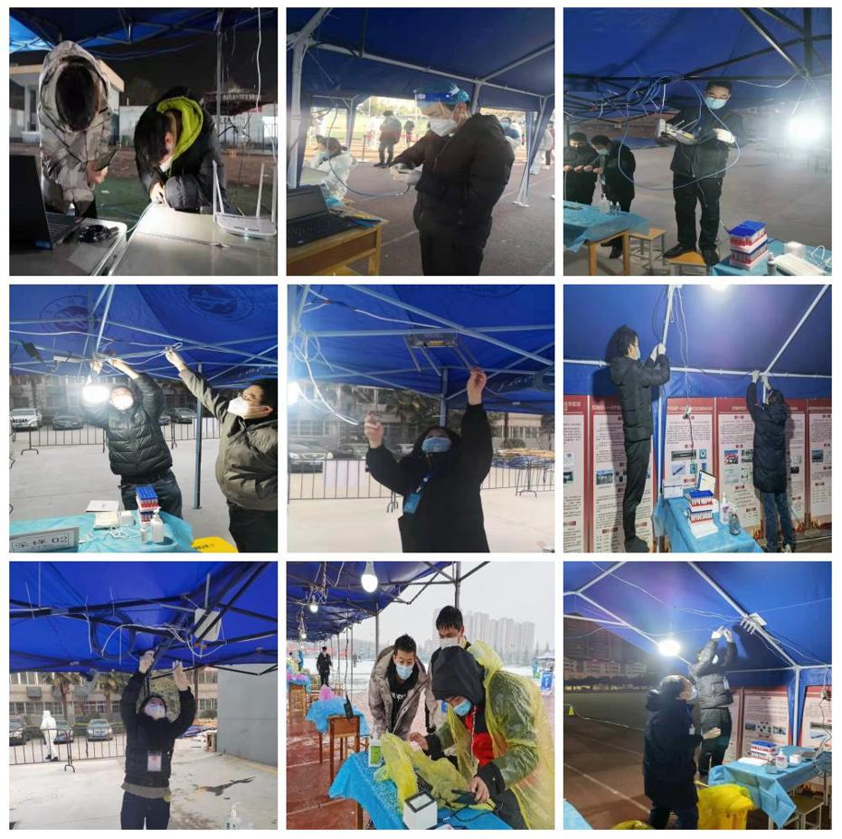 在每次全員核酸檢測(cè)前,都有一批忙碌的身影,在寒冬里手持網(wǎng)線(xiàn)鉗、剝線(xiàn)器、測(cè)線(xiàn)儀等工具,在“大白”上崗之前,測(cè)網(wǎng)線(xiàn)、調(diào)試路由器,提前為當(dāng)天的核酸檢測(cè)做準(zhǔn)備。在核酸檢測(cè)開(kāi)始后,他們蹲點(diǎn)旁站,堅(jiān)守現(xiàn)場(chǎng)直到當(dāng)天的核酸檢測(cè)順利結(jié)束?!鞍崖酚善麟娫春碗娫床灏迥媚z帶再粘一圈”“這根網(wǎng)線(xiàn)接頭再重新做個(gè)新的”“把所有的筆記本再測(cè)試一遍”。為了保障全員核酸順利進(jìn)行,他們提前到崗,一遍一遍地檢查,一次一次地測(cè)試,竭盡所能,盡全力排除隱患點(diǎn),確保核酸檢測(cè)場(chǎng)地網(wǎng)絡(luò)通暢?!斑@幾天網(wǎng)絡(luò)保障還比較順利,雖然很苦、很累,但核酸檢測(cè)很順利,我們做的一切都很值得”信息中心技術(shù)人員趙駿說(shuō)。從1215日開(kāi)始,趙駿同志一直堅(jiān)守鄠邑校區(qū),經(jīng)常冒著風(fēng)雪、加班到凌晨,為鄠邑校區(qū)全員核酸檢測(cè)提供網(wǎng)絡(luò)保障。