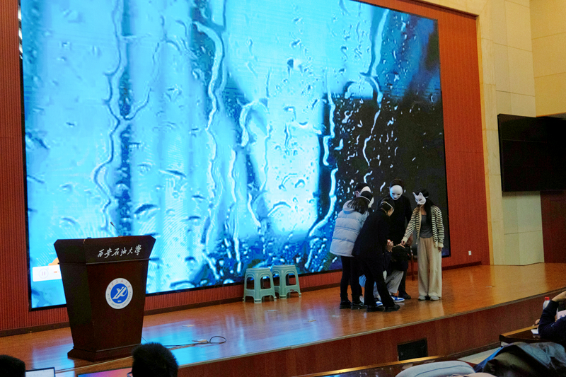 決賽共有十三支代表隊參賽。十三個劇目用歡樂和淚水演繹了當代大學生心理成長的歷程,展示出青春的精彩。馬克思主義學院的情景劇《追光者》刻畫了一個想讓所有人滿意的心靈終于卸下了面具,認識到自己原本就是一道光;外國語學院的情景劇《you are not alone》演繹了一個孤獨自閉癥的學生,感受到來自朋輩互助的溫暖,讓友愛為青春護航的故事;人文學院的情景劇《卸裝》刻畫了一位困于外貌焦慮的少女驚艷回歸的故事,呼吁大家認同自我,做真實的自己;計算機學院的情景劇《接納不完美的自己》展現(xiàn)了一位膽怯、敏感、自我保護的女大學生初入校園時躲閃、退避,在同學們的幫助下敞開心扉,接納性格中的不完美,最終獲得真摯的友誼;經濟管理學院的情景劇《凡而不凡》講述了退伍大學生重返校園后的生活與改變,讓自己和伙伴們熠熠生輝;音樂系的情景劇《中國山河,寸土不讓》將學生對邊防戰(zhàn)士的尊敬與專業(yè)技能結合起來,用歌聲和樂曲展現(xiàn)了心路歷程;化學化工學院的情景劇《愿你走出半生,歸來仍是少年》講述了性格孤僻的大三學生,經過舍友的幫助走出心理困境;石油工程學院的情景劇《高人一等》講述了一個貧窮卻佯裝堅強的學生,平日里表現(xiàn)出不可一世的態(tài)度,卻在現(xiàn)實的教育下感受到了人情的溫暖;研究生工作部的情景劇《旅·復興之路》形式新穎,將當代青年的成長軌跡與中華民族的復興之路相結合,展現(xiàn)了一名精致利己主義者的成長蛻變,緊湊的故事情節(jié)和豐滿的人物心理刻畫贏得現(xiàn)場掌聲陣陣;機械工程學院的情景劇《心心抗“疫”》由真實事件改編,講述了疫情下突發(fā)事件中互相體諒和包容才是班級團結凝聚的密碼;電子工程學院的情景劇《偽裝者》展現(xiàn)唯有卸下偽裝的生活,才會迸發(fā)出心靈的火花;理學院的情景劇《蛻變》演繹了主人公從挫折和經歷中不斷成長的蛻變;我校大學生心理協(xié)會出演的《再見,空心病》以“空心病”現(xiàn)象為故事背景,帶領觀眾們找尋生命的意義。