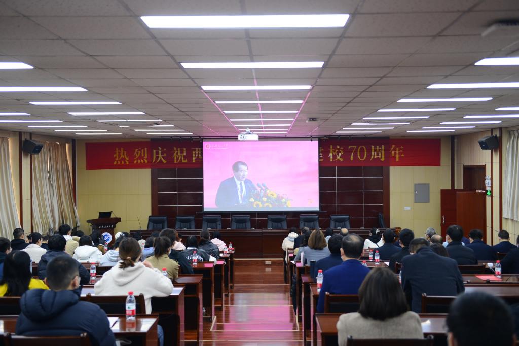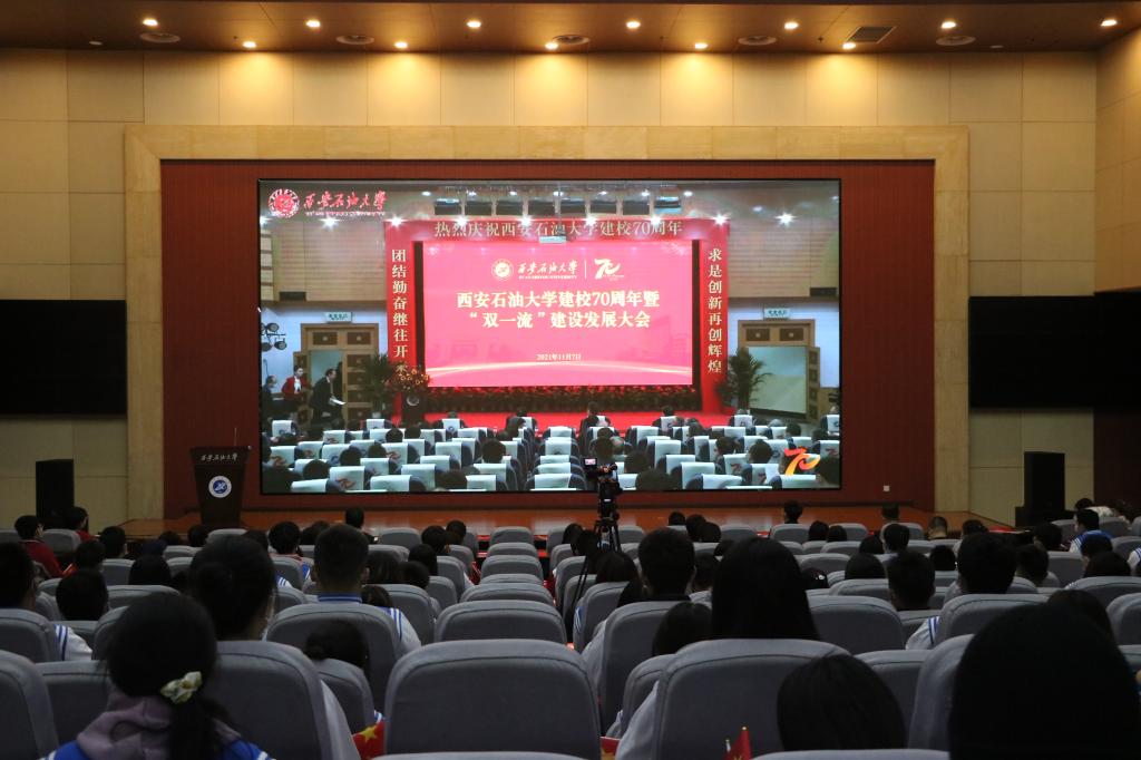 黨委書記賽云秀在主持大會(huì)時(shí)指出,70年艱苦創(chuàng)業(yè),上下求索,書寫著西安石油大學(xué)春華秋實(shí)的華美篇章。70年歷久彌堅(jiān),昂揚(yáng)奮進(jìn),承載著西安石油大學(xué)奔向一流的光榮夢(mèng)想。今天的大會(huì)是西安石油大學(xué)發(fā)展史上承前啟后、繼往開來的大會(huì)。各位領(lǐng)導(dǎo)、來賓、校友和社會(huì)各界朋友對(duì)學(xué)校事業(yè)發(fā)展寄予了殷切的希望和良好的祝愿,增強(qiáng)了學(xué)校的發(fā)展信心和動(dòng)力,令全校師生深受鼓舞,倍感振奮。我們將以建校70周年為新的起點(diǎn),認(rèn)真貫徹落實(shí)習(xí)近平總書記關(guān)于高等教育的重要論述和講話精神,堅(jiān)守為黨育人、為國(guó)育才的初心使命,堅(jiān)持立德樹人根本任務(wù),立足新時(shí)代,貫徹新理念,構(gòu)建新格局,進(jìn)一步優(yōu)化學(xué)科專業(yè)布局,加強(qiáng)師資隊(duì)伍建設(shè),創(chuàng)新人才培養(yǎng)模式,加快科技創(chuàng)新,不斷提升辦學(xué)質(zhì)量和整體水平,推動(dòng)學(xué)校高質(zhì)量發(fā)展,為國(guó)家能源戰(zhàn)略和石油工業(yè)發(fā)展,為譜寫陜西高質(zhì)量發(fā)展新篇章作出更大的貢獻(xiàn)。