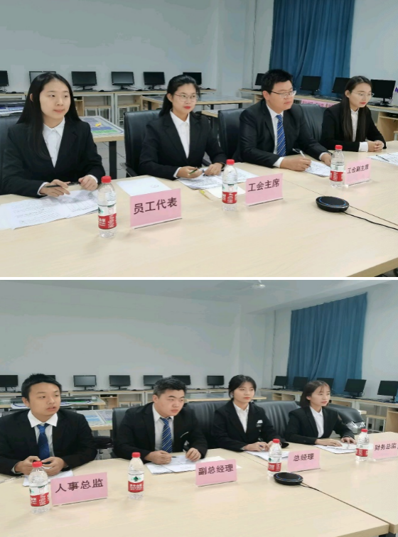 集體協(xié)商談判是一種合作式的談判,為企業(yè)和職工搭建起溝通橋梁,推動(dòng)企業(yè)健康持續(xù)和諧發(fā)展,維護(hù)經(jīng)濟(jì)社會(huì)穩(wěn)定大局發(fā)揮了重要作用。大賽為學(xué)生提供了一個(gè)展示學(xué)習(xí)成果的平臺(tái),幫助學(xué)生儲(chǔ)備了勞動(dòng)關(guān)系協(xié)調(diào)、勞動(dòng)矛盾化解的專業(yè)能力。我校首次參加該項(xiàng)賽事,在學(xué)校領(lǐng)導(dǎo)的高度重視與支持之下,由朱海娟、肖焰兩位老師做專業(yè)指導(dǎo),李焱老師做場地、網(wǎng)絡(luò)技術(shù)支持,兩支參賽隊(duì)伍刻苦鉆研比賽案例,在談判中互相協(xié)作、共同提升。經(jīng)過四場緊張的對決,由曹俊、黨曉婕、高一喆、田彥組成的資方代表隊(duì),王思淇、王嘉華、蘭艷芳、謝彤組成的勞方代表隊(duì)均榮獲團(tuán)隊(duì)二等獎(jiǎng)的佳績。
