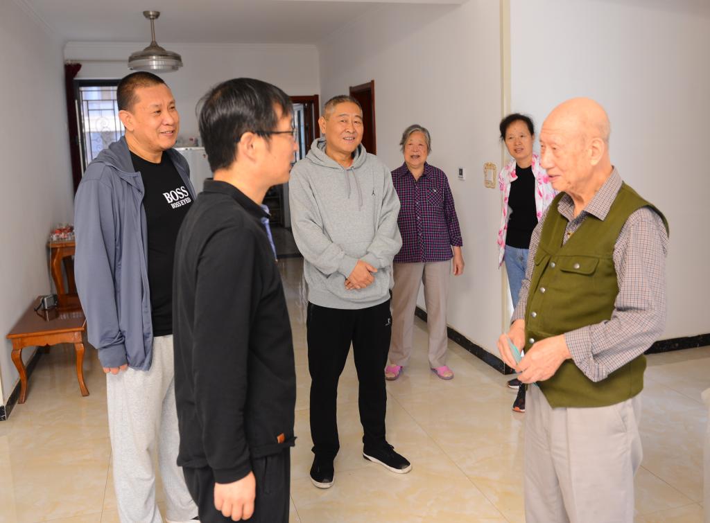 蘇文甫副校長(zhǎng)先后來到六位離休干部家中,與他們親切交談、噓寒問暖,了解他們的日常生活和健康狀況??吹窖o(jì)元、董玉田、王世達(dá)、沈青怡、劉桂榮、鄭承蘭等多位離休干部身體康健、精神矍鑠,蘇文甫副校長(zhǎng)特別高興,向老干部們介紹了學(xué)校今年以來各項(xiàng)工作的開展情況,感謝他們?cè)趯W(xué)校建設(shè)發(fā)展過程中尤其是復(fù)校過程中做出的貢獻(xiàn),感謝他們長(zhǎng)期以來對(duì)學(xué)校工作的關(guān)心和支持,希望他們保重身體,健康快樂地生活,一如既往地關(guān)心和支持學(xué)校的建設(shè)與發(fā)展,為學(xué)校高質(zhì)量發(fā)展建言獻(xiàn)策。同時(shí)叮囑隨行人員,要對(duì)老干部政治上多關(guān)心、思想上多溝通、生活上多照顧、精神上多關(guān)懷,為他們安享晚年創(chuàng)造更好的條件。幾位老干部激動(dòng)地回憶了當(dāng)年復(fù)校過程中的艱苦奮斗歲月,連連感謝學(xué)校領(lǐng)導(dǎo)對(duì)自己的關(guān)懷和照顧。他們認(rèn)為在學(xué)校黨委的領(lǐng)導(dǎo)下,學(xué)校發(fā)展取得了可喜的成績(jī),祝愿學(xué)校越辦越好,取得更大的輝煌。