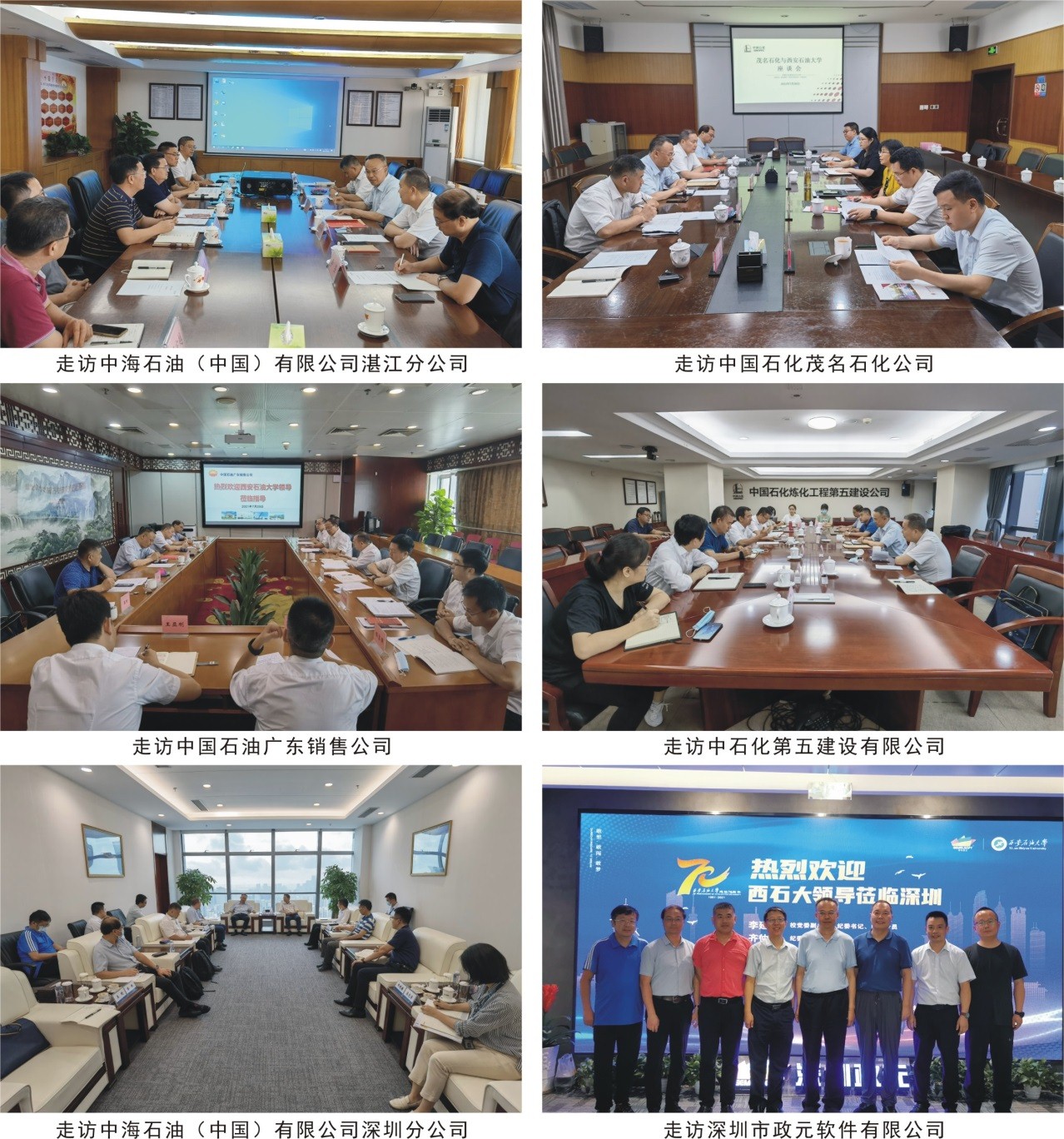 726日至81日,校黨委副書記、紀委書記、監(jiān)察專員李延平帶隊先后走訪了中海石油(中國)有限公司湛江分公司、中國石化茂名石化公司、中國石油廣東銷售公司、中國石化第五建設(shè)有限公司、中海石油(中國)有限公司深圳分公司、深圳市政元軟件有限公司(校友企業(yè))等6家企業(yè)。