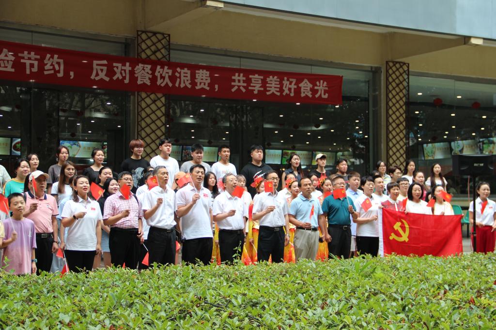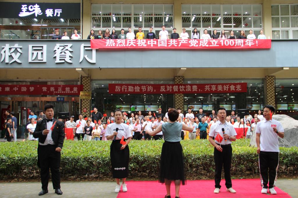 為慶祝中國共產(chǎn)黨成立100周年,響應(yīng)習(xí)近平總書記在黨的十九大報(bào)告中提出的新時(shí)代堅(jiān)持文化自信號(hào)召,7月1日中午,音樂系組織師生在雁塔校區(qū)學(xué)生餐廳舉辦“紅歌快閃”活動(dòng),吸引了校園眾多師生觀看,場面熱烈。音樂系已連續(xù)四年組織“紅歌快閃”活動(dòng),唱響主旋律,凝聚精氣神,謳歌黨的光輝歷史和豐功偉績,充分展現(xiàn)師生良好的精神風(fēng)貌。校黨委副書記雷西合,組織部、宣傳部、音樂系、高教研究與評(píng)估中心、材料科學(xué)與工程學(xué)院、馬克思主義學(xué)院、經(jīng)濟(jì)管理學(xué)院、外國語學(xué)院等單位負(fù)責(zé)人,以及100余名音樂系師生參加了本次“紅歌快閃”活動(dòng)。本次活動(dòng)由音樂系黨總支策劃,何云老師排練指導(dǎo)。
