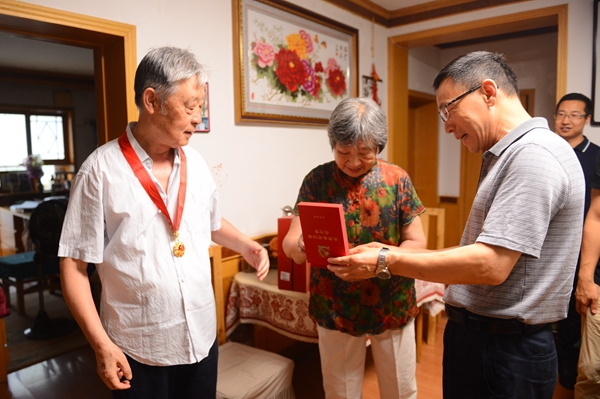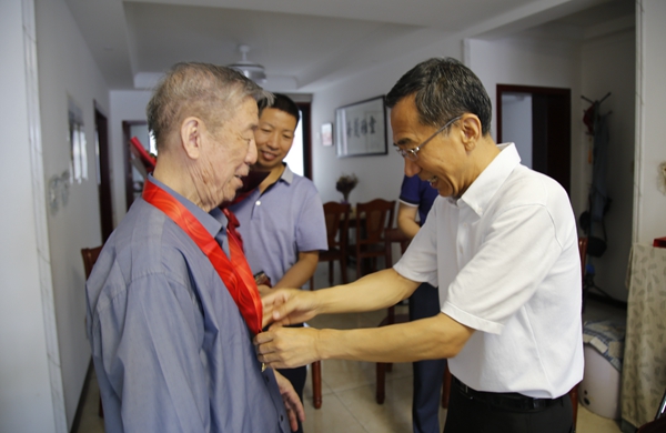 在“慶祝中華人民共和國成立70周年”紀念章獲得者、離休干部薛紀元家中,校黨委書記賽云秀為薛紀元和姚桂榮夫婦佩戴了“光榮在黨50年”紀念章,仔細詢問了他們的身體健康狀況和生活情況。他指出,在建黨100周年之際,黨中央決定頒發(fā)“光榮在黨50年”紀念章,體現(xiàn)了以習近平同志為核心的黨中央對老黨員的政治關懷,體現(xiàn)了黨和人民對老黨員歷史貢獻的充分肯定,希望他們保持愉悅身心、安享晚年生活,并積極為學校提出寶貴意見建議,助力學校改革發(fā)展。隨后,賽書記慰問了“慶祝中華人民共和國成立70周年”紀念章和“中國人民志愿軍抗美援朝出國作戰(zhàn)70周年”紀念章獲得者董玉田、李秋華夫婦和困難老黨員陳寶江,并為他們佩戴了“光榮在黨50年”紀念章。在陳寶江同志家中,賽書記親切詢問其身體狀況、家庭收入、醫(yī)藥費報銷情況以及生活中存在的困難和問題,叮囑相關部門要多關心老黨員的生活,幫助他們解決實際問題。