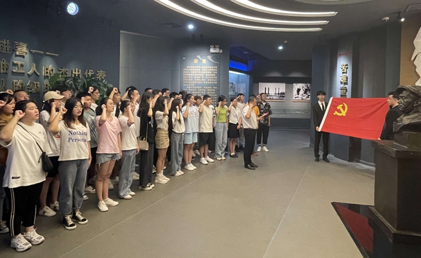 講黨課比賽開始前,學(xué)校組織各院(系)新發(fā)展黨員代表在鐵人王進(jìn)喜紀(jì)念館集中進(jìn)行了入黨宣誓活動,在黨委組織部常務(wù)副部長種宇宏老師的帶領(lǐng)下,全體新發(fā)展黨員代表面對黨旗,高舉右手莊嚴(yán)宣誓,表達(dá)了對黨的鄭重承諾和為黨的事業(yè)奮斗終生的決心。