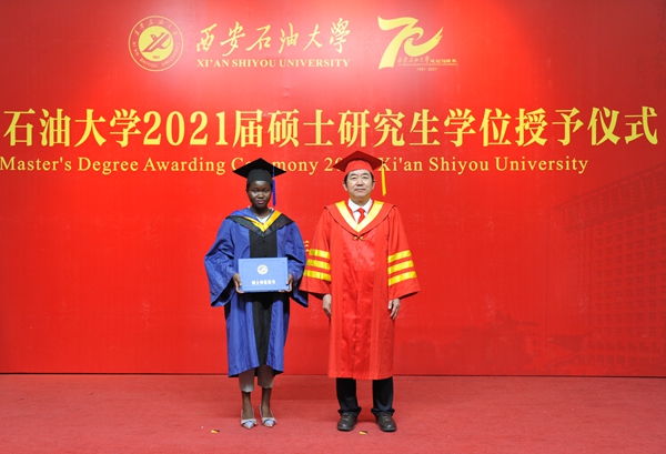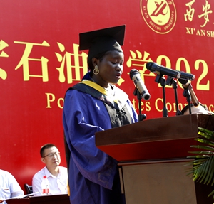 地球科學(xué)與工程學(xué)院高棒棒和石油工程學(xué)院來自加蓬共和國(guó)的歐碧麗同學(xué),分別代表2021屆碩士研究生和碩士留學(xué)生在發(fā)言中向悉心培育自己的母校、師長(zhǎng)和親人表示感謝,同時(shí)表達(dá)了自身繼續(xù)努力、續(xù)寫輝煌的信心和決心。