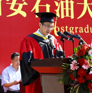 研究生導(dǎo)師代表、陜西省青年科技新星、校拔尖人才、化學(xué)化工學(xué)院陳剛教授勉勵(lì)研究生保持創(chuàng)新的思維和開放的精神,在今后的工作中從知識(shí)學(xué)習(xí)轉(zhuǎn)向問題研究,從學(xué)生氣質(zhì)轉(zhuǎn)向?qū)W者品質(zhì),從理論受教轉(zhuǎn)向?qū)嵺`創(chuàng)新,通過奮斗成就精彩人生。