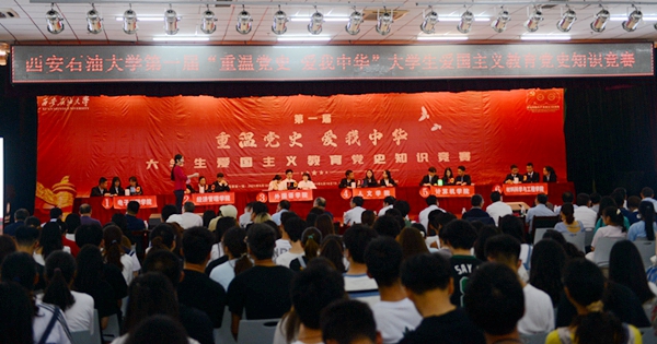 6月25日晚,由宣傳部、學生工作部、教務處、校團委主辦,馬克思主義學院承辦的西安石油大學第一屆大學生黨史知識競賽決賽在鄠邑校區(qū)騰輝活動中心隆重舉行。校黨政領導賽云秀、李天太、李延平、張木、雷西合、陳軍斌出席。相關(guān)部門負責人及學生代表400余人參加本次活動。經(jīng)過前期的初賽,電子工程學院、經(jīng)濟管理學院、外國語學院、人文學院、計算機學院、材料科學與工程學院六支代表隊進入決賽。