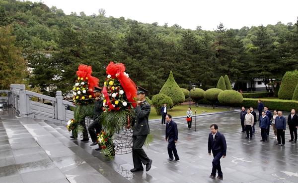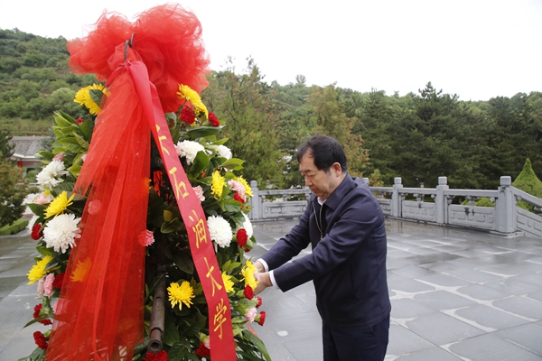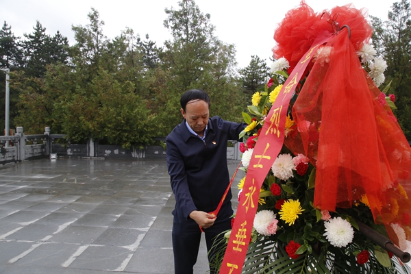 校黨委書記賽云秀為革命烈士敬獻(xiàn)花籃