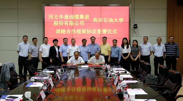 陳軍斌副校長(zhǎng)與張文勇董事長(zhǎng)分別代表西安石油大學(xué)和河北華通線纜集團(tuán)股份有限公司簽署了校企戰(zhàn)略合作框架協(xié)議。協(xié)議中約定雙方今后將在科研合作與技術(shù)交流、人才培養(yǎng)等幾個(gè)方面開(kāi)展全面合作。