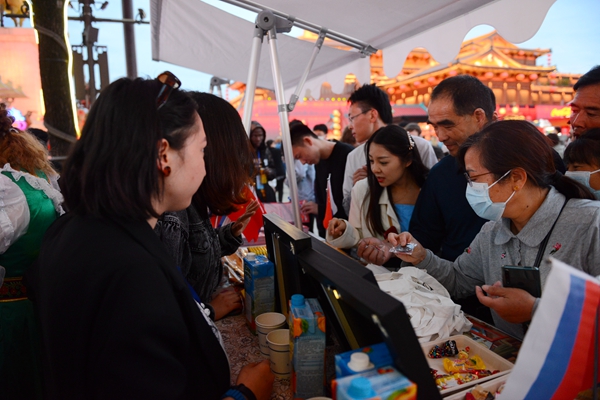 首場活動(dòng)開場節(jié)目是由俄羅斯留學(xué)生達(dá)妮婭、芮娜和我校音樂系學(xué)生張澤宇、朱啟龍共同演唱的俄羅斯傳統(tǒng)歌曲《喀秋莎》《莫斯科郊外的晚上》《朋友》,優(yōu)美的聲音和熟悉的旋律,給大家?guī)砹嗣篮玫囊饩场kS后,俄羅斯同學(xué)們表演了俄羅斯民族舞蹈《卡林卡》、俄羅斯民謠彈唱《布谷鳥》,中外學(xué)生合作表演了中文歌曲《美麗的神話》和街舞《少年》。期間還精心組織了俄羅斯知識(shí)有獎(jiǎng)問答及學(xué)俄語等互動(dòng)節(jié)目,現(xiàn)場設(shè)置俄羅斯紅場及套娃道具打卡,吸引了眾多市民游客的熱情參與。